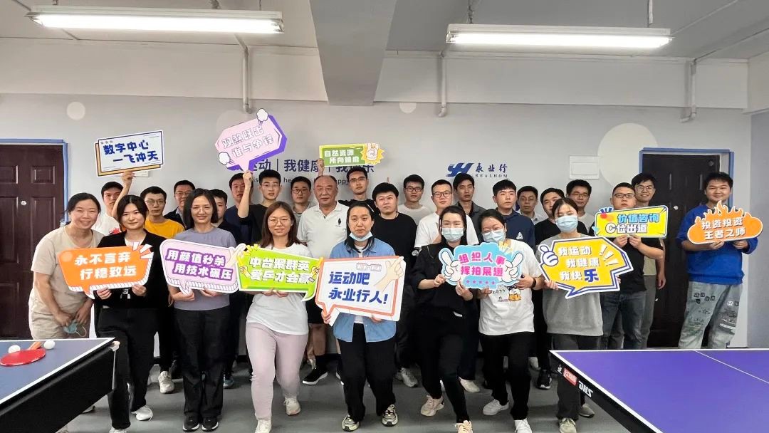 永业行自然资源事业群组织开展乒乓球友谊赛 2022-08-16 为丰富员工业余文化生活,增强团队凝聚力,进一步推进永业行建设,2022年8月12日,永业行自然资源事业群在水岸国际办公区员工健身房举办乒乓球友谊赛。 比赛在欢乐和谐的氛围中进行,赛场上,参赛选手们活力四射,尽显风采,将高远球、扣杀等各路球技展现得淋漓尽致,大家遵循友谊第一、比赛第二的原则,赛出了风格,在切磋球技的同时也增进了感情,加深了友谊。 本次比赛充分展示了永业行人积极向上、努力拼搏的精神风貌,通过比赛,员工们加强了身体锻炼,增进了彼此的友谊,活跃了公司文化生活,未来事业群将开展更多的文化活动丰富员工生活,弘扬健康向上、和谐包容、共同发展的永业行理念,积极倡 MORE
