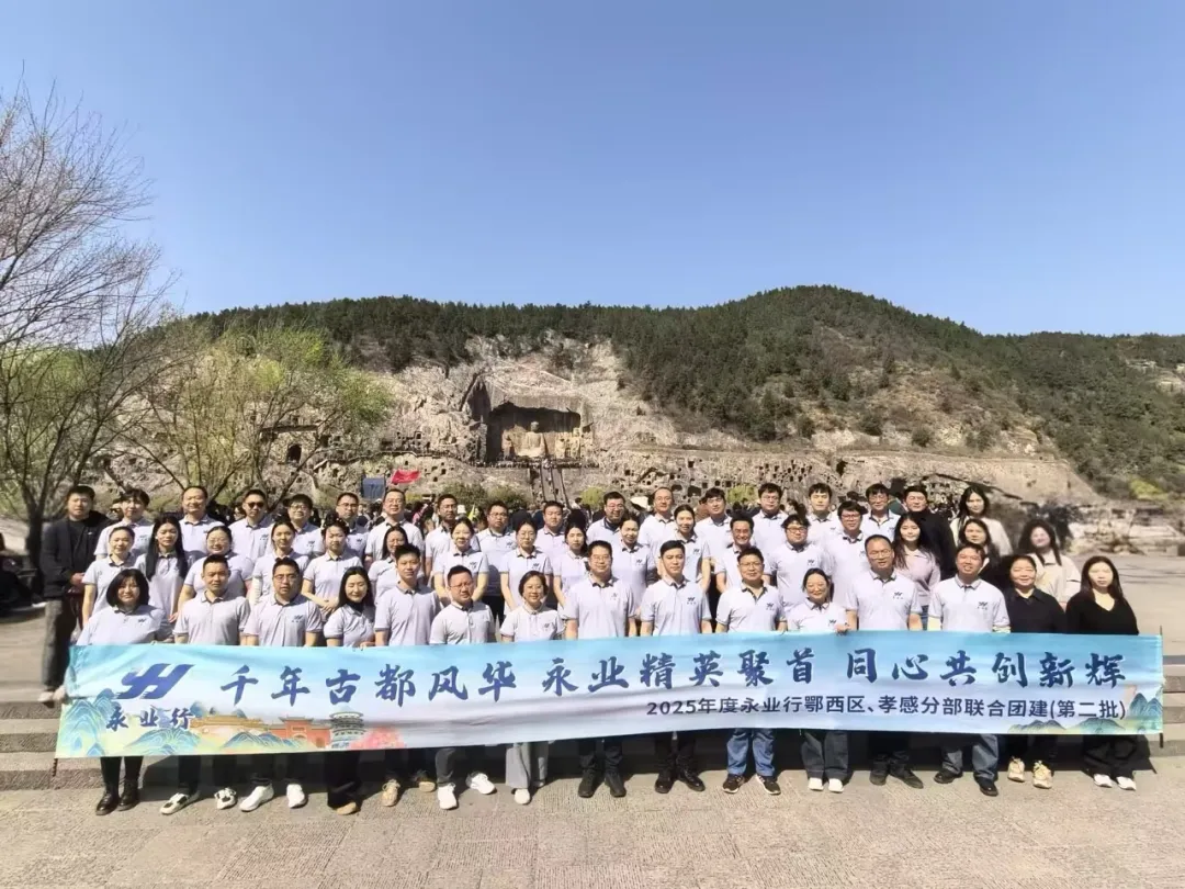 2025年3月21-23日,永业行鄂西区与孝感分部员工60余人赴河南,展开为期3天的文化探索之旅。副总裁兼鄂西区总经理雷小明携鄂西区执行总经理黄丽群、杨懿,孝感分部执行董事张立胜、总经理梁小虎参加团建活动。